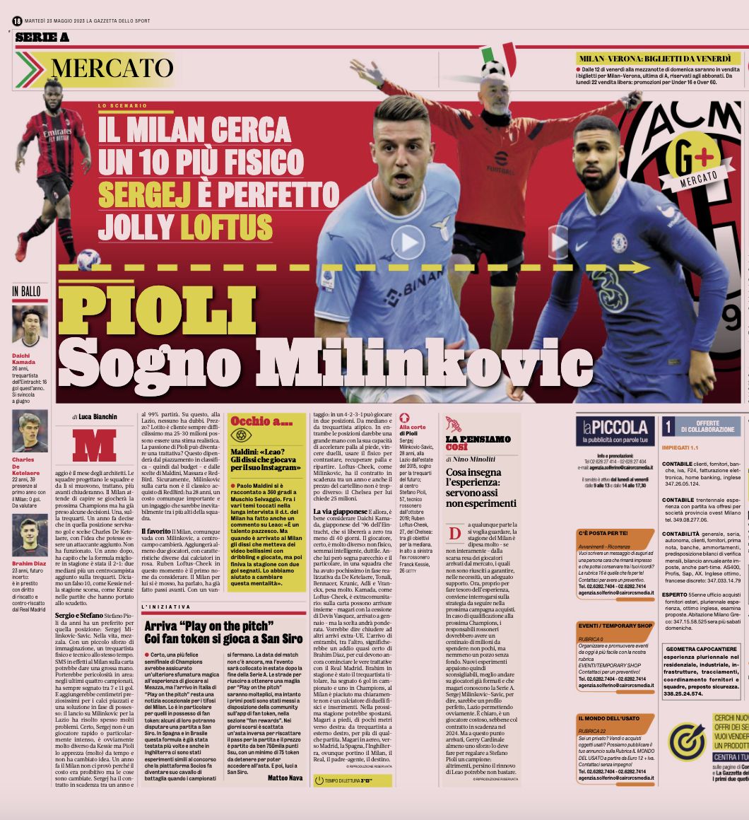 Can those players be upgraded? Sure. Should they be sold when they know Pioli’s system well, don’t have huge market value and aren’t paid a fortune…? I don’t think so. Messias and Florenzi… sure, but Calabria and Saelemaekers both have a place next season, unless a very good offer arrives for either (could be used to generate some nice capital gains).
