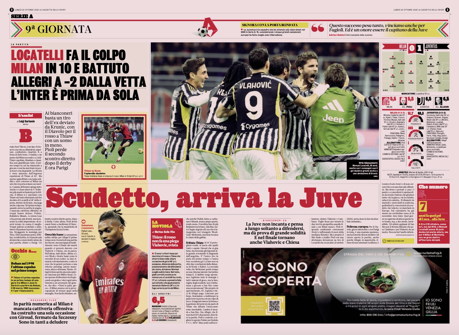 La Gazzetta dello Sport (seen below) recall that the victory for Juve was paved by Malick Thiaw’s naive sending off in the 40th minute, but at the same time it must be noted that they limited Milan to just one dangerous chance.