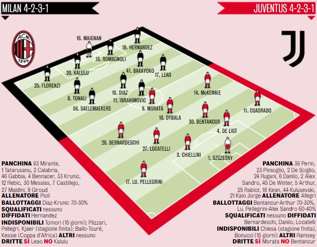 According to what is being reported by La Gazzetta dello Sport, Mike Maignan will be the goalkeeper for the Rossoneri with Alessandro Florenzi keeping his spot at right-back as Davide Calabria has spent a few months out and is not quite at 100%. Pierre Kalulu retains his place at centre-back with Alessio Romagnoli returning after Covid, and Theo Hernandez on the left.