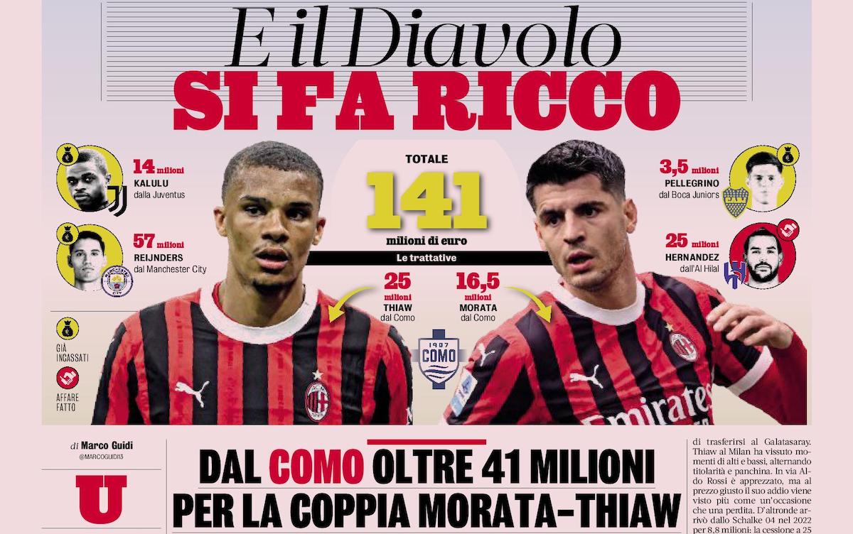 La Gazzetta dello Sport (seen below) report this morning that Como and Milan had been in contact for days to discuss the future of Morata, but in the meantime they have also found an agreement in principle over Thiaw. All of this in an operation worth over €40m.