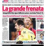 Il Corriere dello Sport write: “The great stall. Draw in the derby and the Stadio Maradona: Milan and Napoli remain on top at +7. De Vrij own goal and Lautaro missed penalty. Pioli: ‘We were strong and courageous’, Inzaghi: ‘Glass half-empty, we created many chances’.”