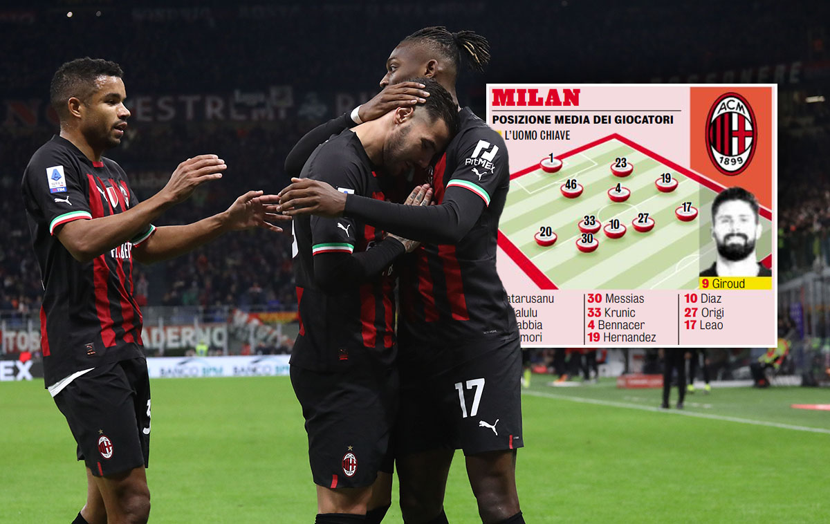 Last night’s win was important in that regard as Napoli beat Atalanta a few hours earlier. Down below is the average position of each starting Milan player in the game.
